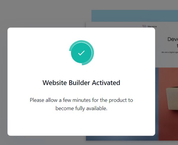 4. You will see the Website Builder Activated pop-up. Please allow a few minutes for the activation to complete.