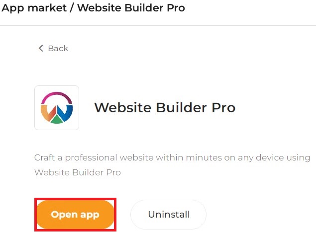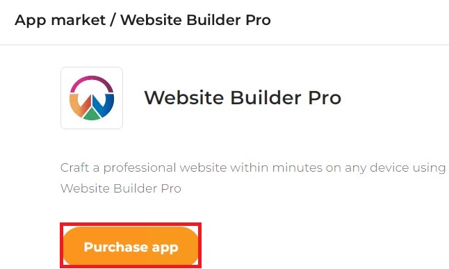 4. This opens the Website Builder Pro plan within the App Market. Click on Purchase App.