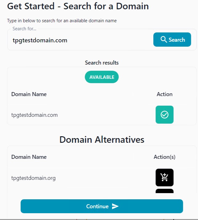 a) Register a new domain - once you select this option type in the domain that you want to use and click on Search. If you see AVAILABLE you can proceed and register the domain name, if not please choose another domain name that is available or use one of the Domain Alternatives at the bottom.