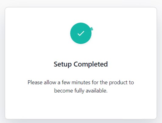 8. You will see the Setup Completed pop-up. Please allow a few minutes for the product to be fully activated.