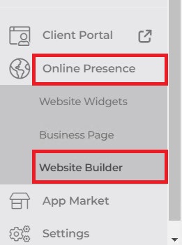 2. Once logged in expand the Online Presence menu and click on: Website Builder.